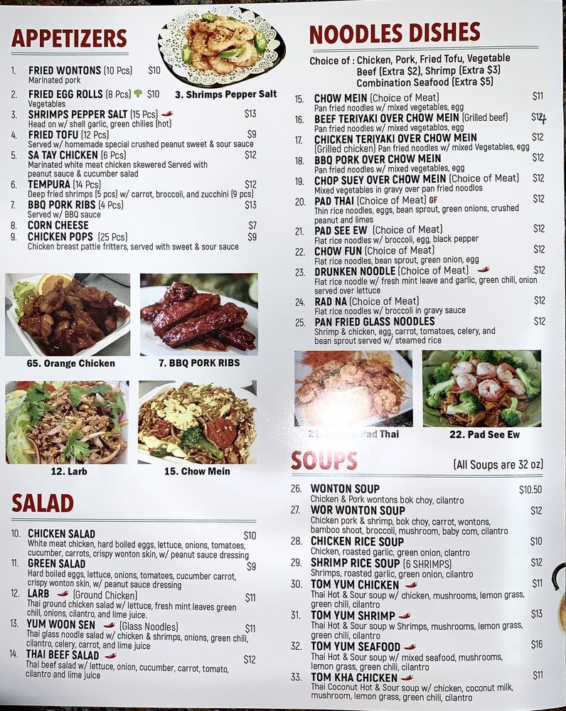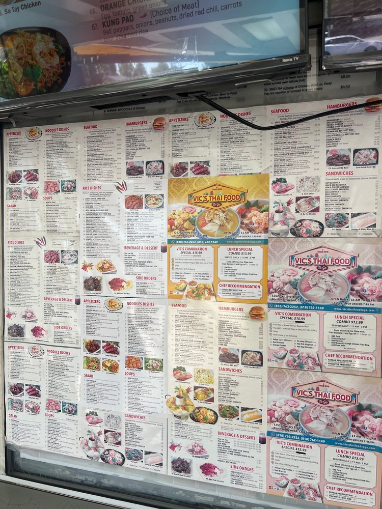 Vic’s Thai Food, located in North Hollywood, CA, offers a wide range of Thai dishes with options for delivery and takeout. The menu includes appetizers like fried wontons, egg rolls, and shrimp pepper salt, along with salads and soups such as larb salad and tom kha chicken soup. Customers have praised the green curry with beef and chicken pad see ewe. The restaurant also offers happy hour specials and a variety of options for vegetarians and vegans. With a casual atmosphere and friendly service, Vic’s Thai Food is a standout spot for flavorful Thai cuisine in the area. The diverse menu, generous portions, and enticing flavors make it a must-try for anyone craving authentic Thai food with a modern twist.