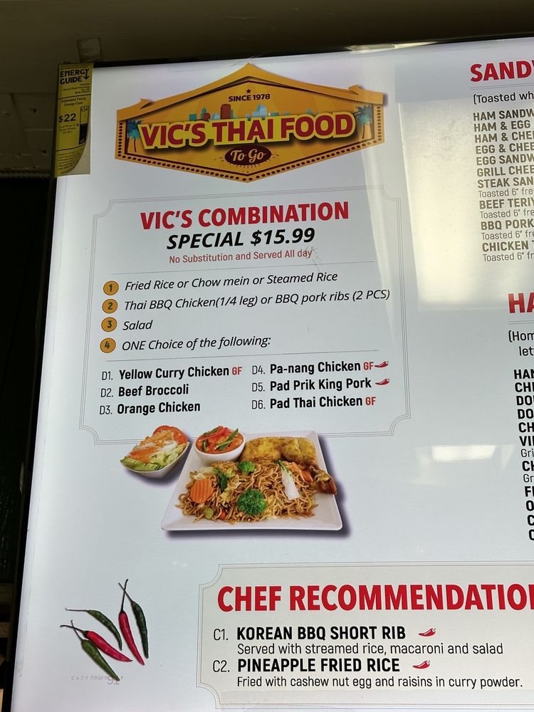 Vic’s Thai Food Menu (Update 2025)